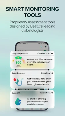 BeatO direka untuk memudahkan pengurusan diabetes harian anda. Log bacaan gula darah anda secara automatik dengan graf yang mudah difahami dan hasil berkod warna untuk tafsiran segera. Apabila bacaan di luar julat normal, terima maklum balas serta-merta dan kongsi data dengan mudah melalui e-mel kepada orang tersayang atau doktor anda. Manfaatkan sokongan berkuasa AI kami; chatbot pintar BeatO sedia menjawab pertanyaan berkaitan diabetes anda serta membantu menjejak vital penting seperti tekanan darah dan kadar denyutan jantung. Tambahan lagi, akses pelbagai artikel pendidikan dan kursus yoga eksklusif, serta jadualkan konsultasi dalam talian dengan pakar diabetologi terkemuka terus dari aplikasi.