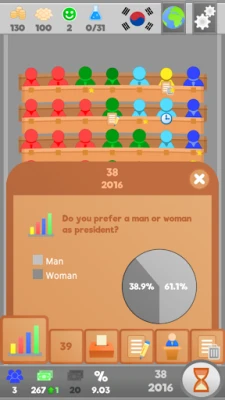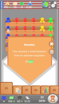 Mulakan perjalanan politik anda yang mencabar, di mana setiap keputusan anda membentuk takdir sebuah negara. Permainan simulasi mendalam dari Somniumsoft ini menjemput anda untuk melangkah ke arena politik, bermula dengan memilih parti anda sendiri dan merangka janji-janji kempen yang akan memenangi hati rakyat. Rasakan deruan apabila anda bertanding dalam pilihan raya, kemudian beralih ke dewan parlimen di mana kuasa sebenar menanti. Di sini, anda akan mengambil alih tanggungjawab untuk meluluskan atau menghapuskan undang-undang penting melalui undi parlimen, secara langsung mencorakkan landskap sosio-politik negara anda.