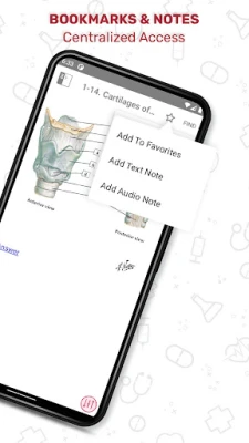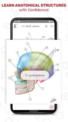 Setiap kad imbas dilengkapi dengan label bernombor untuk struktur utama, bersama jawapan tersembunyi yang boleh didedahkan. Disertakan juga komen ringkas dan nota klinikal yang padat, memfokuskan kepada istilah dan konsep anatomi yang sering diuji. Ciri "Nota Klinikal" membantu menumpukan perhatian pada implikasi klinikal yang paling relevan, amat berguna untuk persediaan peperiksaan seperti USMLE Langkah 1. Kandungan disusun secara terperinci mengikut kawasan anatomi – dari kepala dan leher, toraks, abdomen, hingga ke anggota atas dan bawah – serta dipecahkan lagi kepada Tulang dan Sendi, Otot, Saraf, Salur, dan Visera. Alat carian pintar membolehkan anda mencari maklumat dengan pantas, termasuk istilah perubatan yang sukar dieja, dan semua kandungan boleh diakses tanpa sambungan internet setelah kandungan awal diterima. Ini menjadikannya sumber pelengkap yang ideal untuk buku teks, atlas, atau bahan bedah siasat dalam kursus perubatan, pergigian, kejururawatan, kesihatan bersekutu, dan anatomi manusia peringkat ijazah.