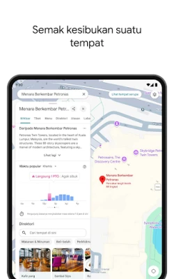 Alami setiap lokasi seperti seorang tempatan dengan pengetahuan yang dipercayai. Sertai komuniti global lebih 500 juta pengguna yang sentiasa menyumbang dan memastikan peta sentiasa terkini setiap tahun. Sebelum melawat, semak tahap kesibukan sesuatu tempat untuk mengelak orang ramai. Gunakan Lens dalam aplikasi ini untuk melihat arah berjalan dilapiskan terus pada dunia nyata, memberikan pengalaman navigasi yang imersif. Saring restoran mengikut jenis masakan, waktu operasi, harga, penilaian, dan banyak lagi untuk mencari hidangan sempurna. Ada soalan tentang tempat letak kereta atau hidangan istimewa? Dapatkan jawapan segera daripada komuniti. Bagi pengguna peranti Wear OS, nikmati akses pantas kepada navigasi dengan Tiles dan Complications yang mudah.