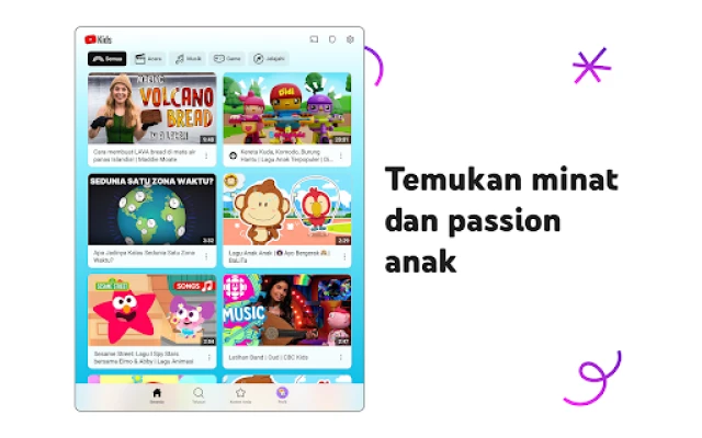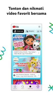 Memperkenalkan YouTube Kids, ruang digital selamat yang direka khas untuk si cilik anda meneroka dunia video yang menyeronokkan dan mendidik, sambil memberikan ketenangan fikiran kepada ibu bapa. Dengan antaramuka yang intuitif dan mudah dikendalikan, platform ini membuka pintu kepada minat baharu, memupuk imaginasi yang tidak terbatas, serta membina keyakinan diri anak anda dalam suasana yang positif dan dilindungi. Kami faham betapa pentingnya kandungan yang sesuai usia, dan YouTube Kids adalah jawapannya untuk masa skrin yang bermanfaat.